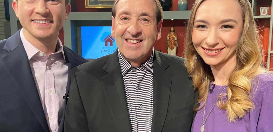 This week, Jim Pinto welcomed Dave and me back as guests on “At Home with Jim and Joy” to discuss practical ways for parents to grow in holiness and to help their children do the same. Our first appearance together was in 2015 when we announced that we were pregnant with Gigi, who at the time was known to the world as “Baby Cowden.”